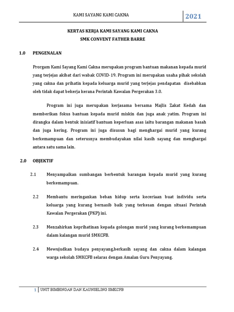 . Skim ini terbahagi kepada lima 5 kategori iaitu. KERTAS KERJA PROGRAM JALINAN KASIH. Tuanmemohon sumbangan dan tajaan program gaya hidup sihat.